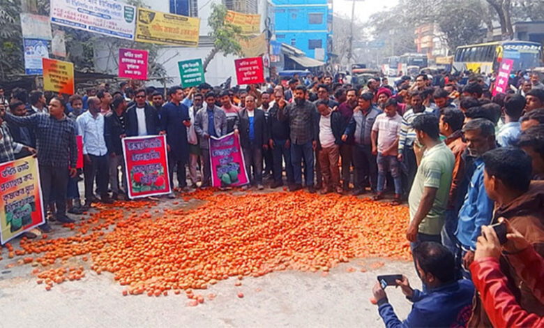 মহাসড়কে টমেটো ফেলে চাষিদের বিক্ষোভ
