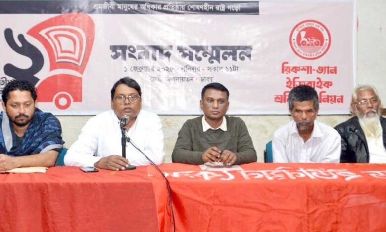 শনিবার (১ ফেব্রুয়ারি) পল্টনের মুক্তি ভবনের মৈত্রী মিলনায়তনে আয়োজিত এক সংবাদ সম্মেলন এ কথা জানান রিকশা-ভ্যান-ইজিবাইক শ্রমিক ইউনিয়নের যুগ্ম সাধারণ সম্পাদক আরিফুল ইসলাম নাদিম।