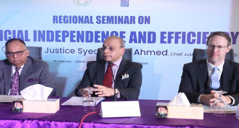 শনিবার (১ ফেব্রুয়ারি) সুপ্রিম কোর্ট ও ইউএনডিপির যৌথ উদ্যোগে রাজশাহীর গ্র্যান্ড রিভার ভিউ হোটেলে বিচার বিভাগের স্বাধীনতা নিশ্চিতকরণসহ বিচারসেবা প্রদানে দক্ষতা বৃদ্ধিতে করণীয় শীর্ষক সেমিনারে প্রধান বিচারপতি এসব কথা বলেন।