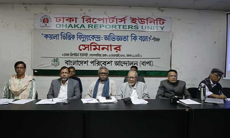 বুধবার ঢাকা রিপোর্টার্স ইউনিটি মিলনায়তনে ‘কয়লাভিত্তিক বিদ্যুৎকেন্দ্রের অভিঘাত-অভিজ্ঞতা কী বলে’ শীর্ষক সেমিনারে এ কথা বলা হয়েছে। বাপা আয়োজিত সেমিনারে বলা হয়, জ্বালানিনীতি ঢেলে সাজাতে হবে। কয়লা থেকে সরে আসতে হবে। নবায়নযোগ্য জ্বালানির ওপর গুরুত্ব দিতে হবে। জাতীয় সক্ষমতার অধীনে দেশে তেল–গ্যাসের অনুসন্ধান বাড়াতে হবে।