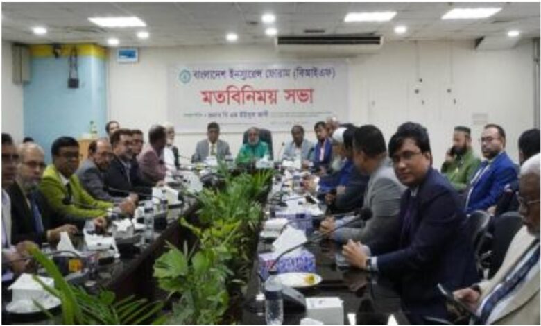 নিজস্ব প্রতিবেদক :বিমা শিল্পের মুখ্য নির্বাহী কর্মকর্তাদের সংগঠন বাংলাদেশ ইন্স্যুরেন্স ফোরামের মতবিনিময় সভা অনুষ্ঠিত হয়েছে।