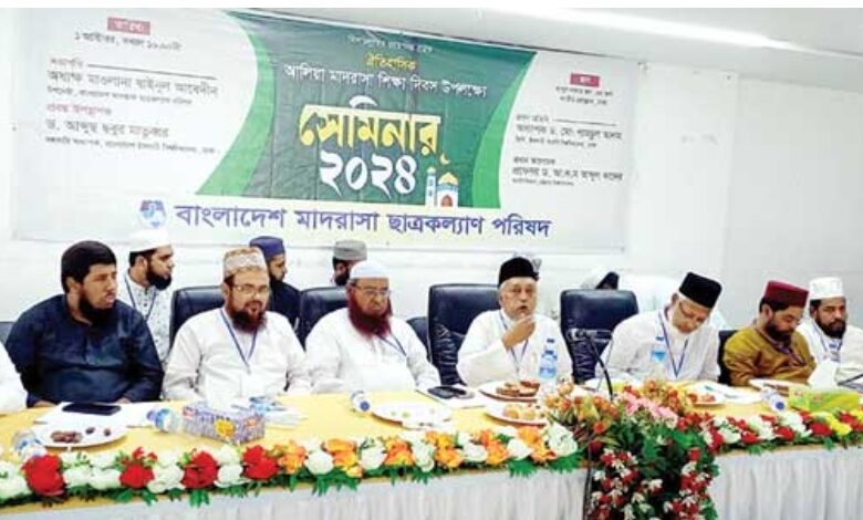 সেমিনারে ‘বাংলাদেশ মাদরাসা ছাত্রকল্যাণ পরিষদ’ ১০ দফা দাবি তুলে ধরেন।