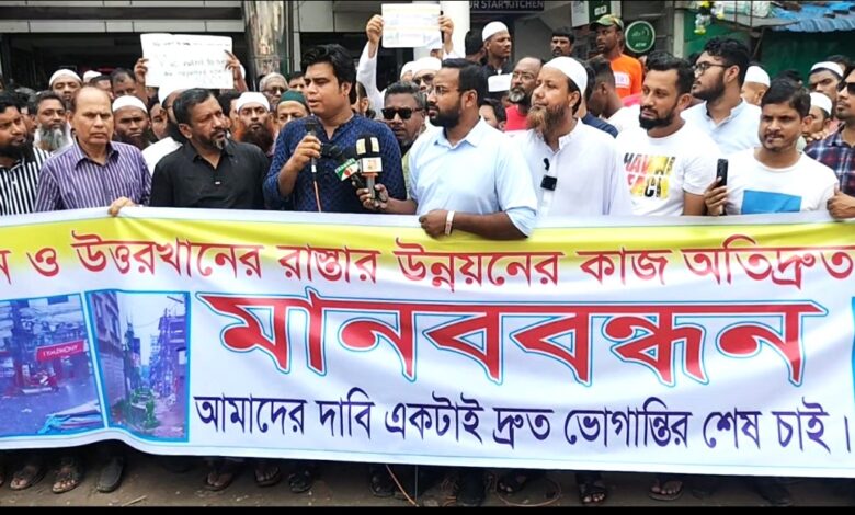 দক্ষিণখানে দ্রুত সড়ক সংস্কারের দাবিতে মানববন্ধন