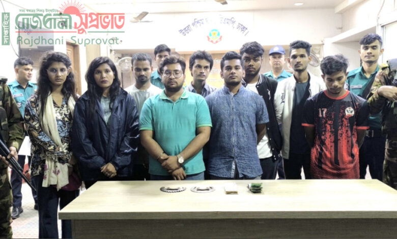 বিজয় পল, ঢাকা: রাজধানীর উত্তরায় ছাত্র সমন্বয়ক পরিচয়ে হোটেলে চাঁদাবাজি করার সময় দুইজন নারীসহ নয়জনকে গ্রেফতার করেছে যৌথ বাহিনী।