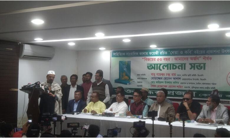 সোমবার (৯ ডিসেম্বর) জাতীয় প্রেসক্লাবে সাহিত্যিক সাংবাদিক কালাম ফয়েজী রচিত ‘নেতা ও কবি’ বই প্রকাশনা উৎসব উপলক্ষ্যে “বিজয়ের ৫৩ বছর : আমাদের অর্জন” শীর্ষক এক আলোচনা সভায় তিনি এ কথা বলেন। আলোচনা সভাটির আয়োজন করে মুক্তিযুদ্ধের প্রজন্ম কেন্দ্রীয় কমিটি।