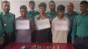 নিজস্ব প্রতিবেদক: রাজধানীর কামরাঙ্গীরচরে ফেব্রিকস ব্যবসায়ী মো. নূর আলম হত্যাকাণ্ডে গ্রেপ্তার তিনজন। ছবিতে মাঝে ব্যবসায়ীর কর্মচারী মিরাজ মিয়া এবং তাঁর ডানে রিফাত ও বাঁয়ে শিপনছবি: ডিএমপি নিউজের সৌজন্যে
