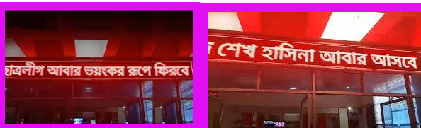 জেলা প্রতিবেদক, খুলনা: ‘ছাত্রলীগ আবার ভয়ংকর রূপে ফিরে আসবে; জয় বাংলা জয় বঙ্গবন্ধু; শেখ হাসিনা আবার আসবে। ’ খুলনা রেলওয়ে স্টেশন ভবনের প্রবেশ দ্বারের ডিজিটাল স্ক্রিনে এমন লেখা দিয়ে পতিত স্বৈরাচার শেখ হাসিনা সরকারের প্রচারণা করা হয়েছে।