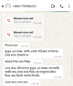 এবং হোয়াটসঅ্যাপে এনায়েতের সাথে এই বিষয় নিয়ে তথ্য চাইতে গেলে সে রাজধানীর সুপ্রভাতের প্রতিনিধিকে অকাত্য ভাষায় গালাগালি করেন এবং তার নামে একটি জিডিও করা হয়েছে যার নং ৩৩২ আরো বলেন ওসি ডিসি আমার পকেটের লোক আমার কিছু করতে পারবি না পুলিশের মাসোহারা দিয়েই ব্যবসা করি এবং এনায়েত হয় জানেন না একটা পত্রিকার সম্পাদক হতে হলে কি কি যোগ্যতা লাগে। তাহলে দালালি করা ভালো মনে হয়।