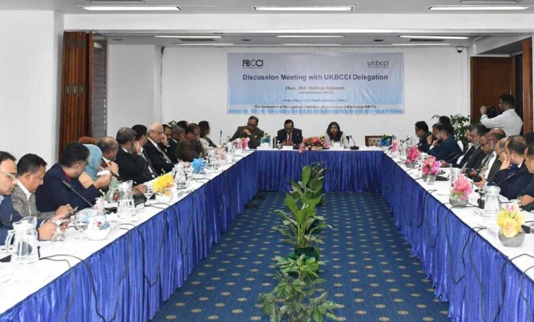 সোমবার (৬ জানুয়ারি) সন্ধ্যায় রাজধানীর হোটেল সোনারগাঁওয়ে এফবিসিসিআই এবং ইউকে বাংলাদেশ ক্যাটালিস্টস অব কমার্স অ্যান্ড ইন্ডাস্ট্রির (ইউকেবিসিসিআই) মধ্যে অনুষ্ঠিত এক মতবিনিময় সভায় এই আহ্বান জানানো হয়। সভায় সভাপতিত্ব করেন এফবিসিসিআইয়ের প্রশাসক মো. হাফিজুর রহমান।