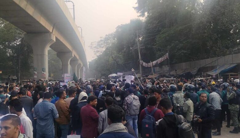 শুক্রবার (২৪ জানুয়ারি) বিকেল ৪টায় রাজধানীর শাহবাগ থানার সামনে ব্যারিকেড দিয়ে তাদের আটকে দেওয়া হয়।